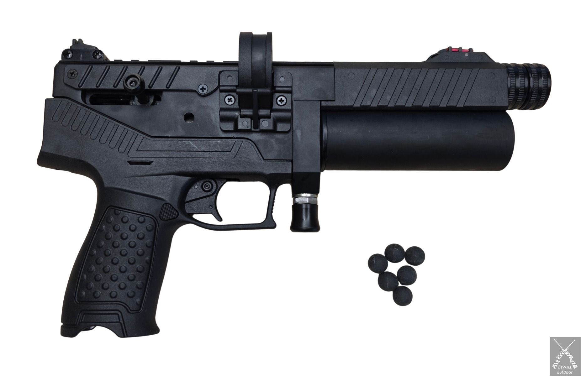 Met dit model kan geschoten worden met een 5-schots magazijn in .50 (Balls). De luchtcilinder is verwijderbaar en heeft een inhoud van 55cc. Met een maximale vuldruk van 250 BAR kunnen er 20 schoten gelost worden. De cilinder kan eenvoudig gevuld worden door middel van de quick-fosterkoppeling.