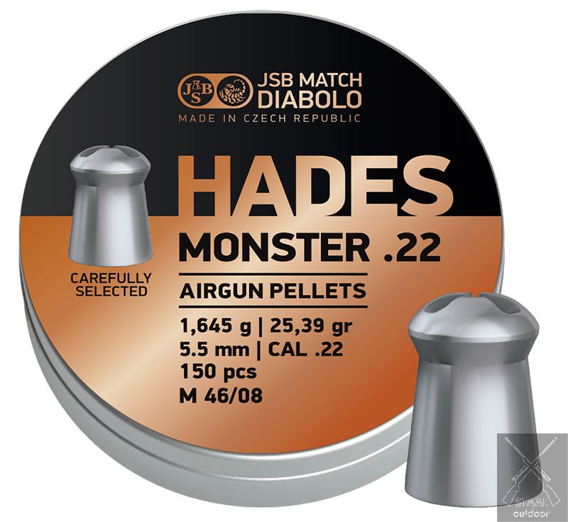 De JSB Hades Monster is een mix van de zwaardere JSB Monster en de hollow point JSB Hades. Deze 5,5mm (.22) luchtbukskogels zijn uiterst geschikt voor wanneer er veel impact nodig is, maar ook een hoger gewicht nodig is door een sterkere buks. JSB zorgt voor zeer consistente schoten, waardoor de Hades Monster de perfecte keuze is als alternatief voor slugs.