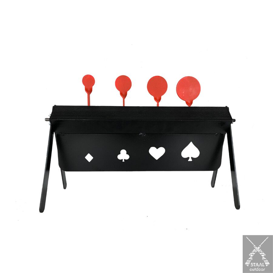 De Reset Target Large Heavy Duty 5mm is een zeer sterk schietdoel met 5mm dikke stalen targets, waardoor deze ook geschikt is voor zwaardere luchtbuksen. Extra stabiliteit door de steunpoten.