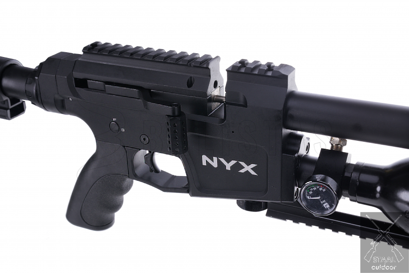 De Reximex AR PCP Nyx is een hoogwaardige persluchtbuks die prestaties, design en gebruiksgemak perfect combineert. Dankzij de fles van 425cc en de werkdruk van 250 bar zorgt dat voor een constante kracht en nauwkeurigheid bij elk schot.