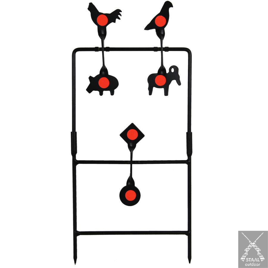 De Spinner Target Animals heeft twee etages; een ruit en een cirkel op de eerste en vier dieren bovenin. Dit target is in de grond te prikken en daarna klaar om te plinken.