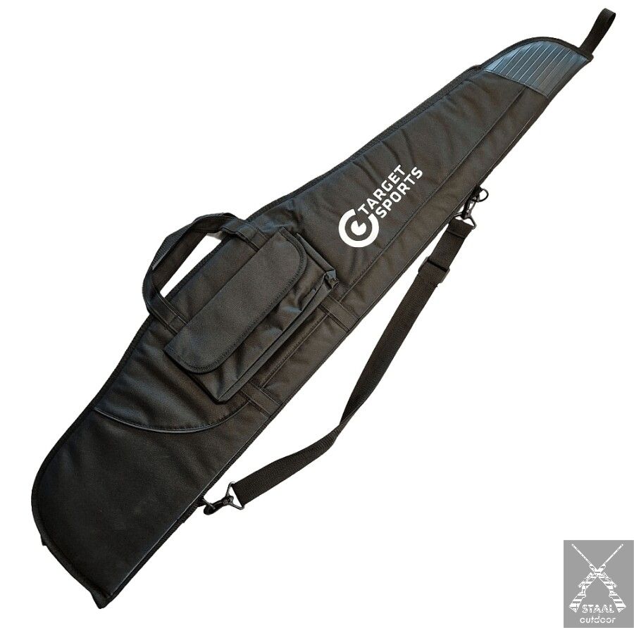Luxe geweertas van Target Sports met dubbele voering en zwart kunstleder aan de voorkant om het uiteinde van de loop optimaal te beschermen. De foudraal is vrij hoog, waardoor een luchtbuks er goed in past, ook met een gemonteerde richtkijker. Extra accessoires, zoals kogeltjes, kunnen eenvoudig in het voorvakje gedaan worden. Inclusief handvat en schouderband, waardoor het reizen met de tas perfect mogelijk is.