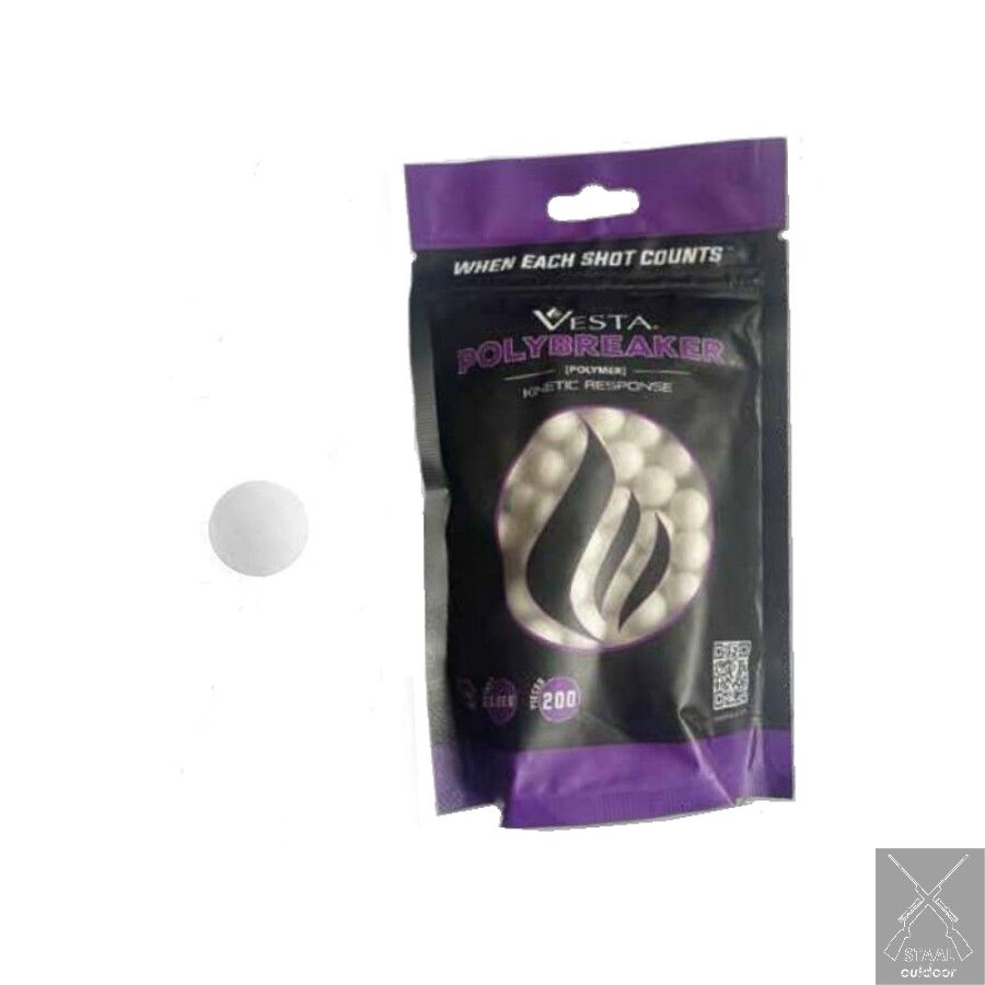 Vesta PolyBreaker Balls zijn .50 munitie die gemaakt is van een gladde en harde, polymeren materiaal. Dit zorgt voor een hogere impact dan rubber en is accuraat op grotere afstanden van meer dan 20 meter.