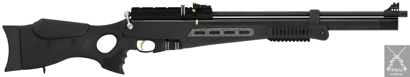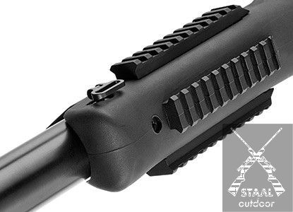 Door een zacht rubberen inleggingen geeft deze Hatsan een geweldig gevoel van controle. Met het magazijn kunnen er 10 schoten gelost worden met de 5,5mm en 9 schoten met de 6,35mm kaliber. Het “Anti-double pellet feed” mechanisme voorkomt dat er meer dan één pellet tegelijk geladen worden. De luchtcilinder heeft een inhoud van 255cc. De drie picatinny rails onder en aan de zijkanten van het voorstuk zorgen voor veel mogelijkheden om accessoires op te installeren.