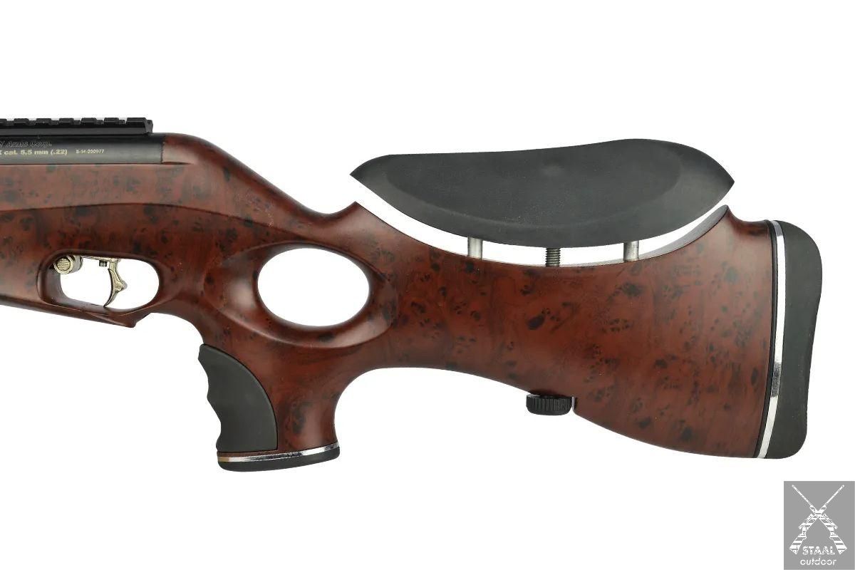Het duimgat zorgt er voor dat de schutter de luchtbuks stevig vast kan houden en de trekker zeer gecontroleerd over kan halen. De automatische veiligheid zorgt er daarnaast voor dat het met deze RETAY schieten veilig en vertrouwd is.